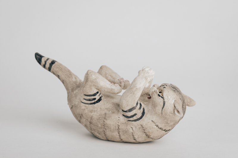 与其说是陶艺家,不如说是猫的艺术家。我一边观察猫的动作和表情,一边制作有情感的作品。