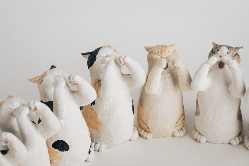 与其说是陶艺家,不如说是猫的艺术家。我一边观察猫的动作和表情,一边制作有情感的作品。