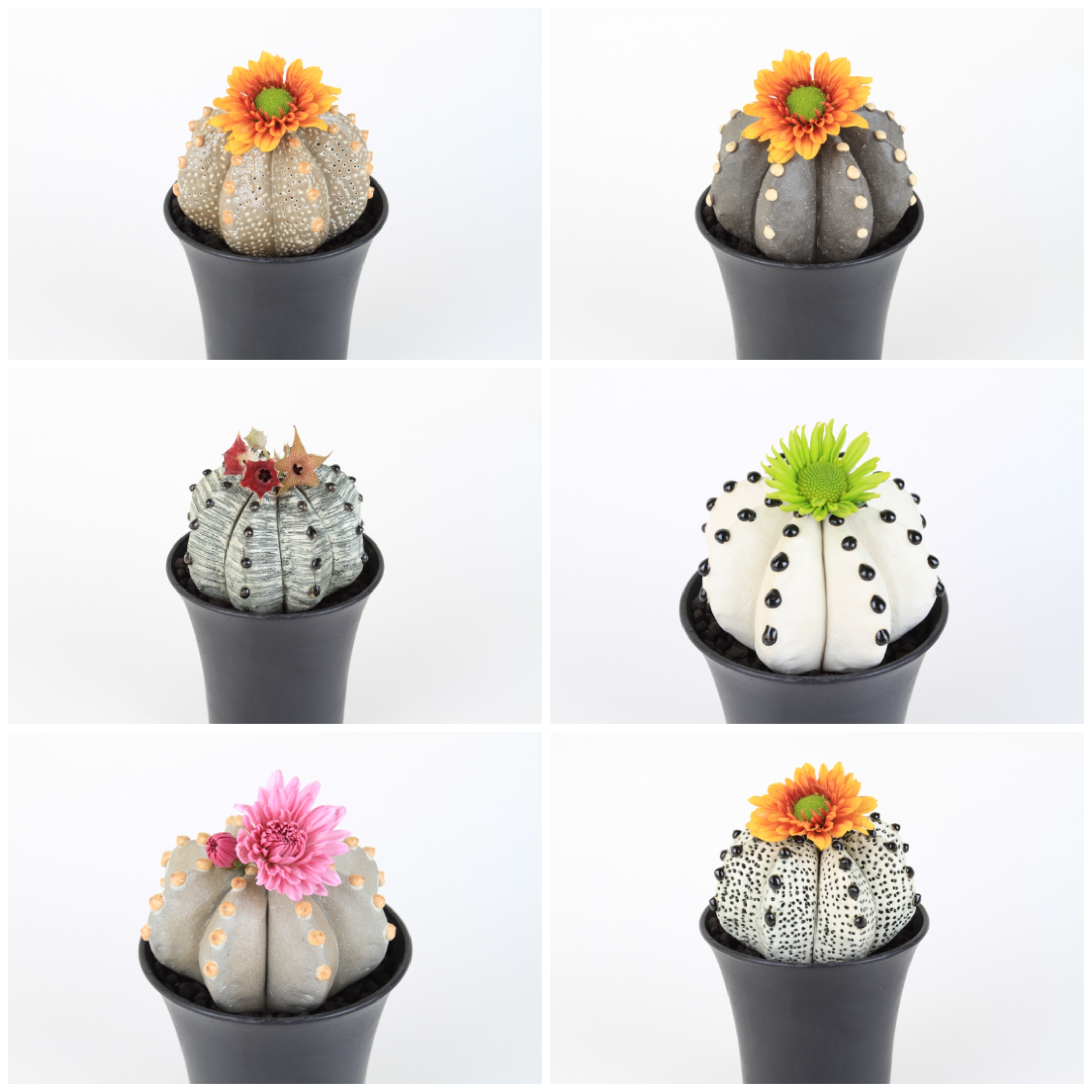 正是在这样的情感下,我从仙人掌农家那里了解到各种各样的仙人掌,发现它们的形状、刺纹、斑点中蕴含着独特的自然之美。于是我直觉上觉得,如果能通过这些艺术造型美去表达“另一种美”,即便是无法养护植物的人,也能享受这些陶制植物作为装饰品的乐趣。