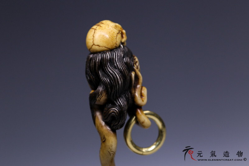 材质:虾夷鹿角、黄杨、黑檀、铜、银