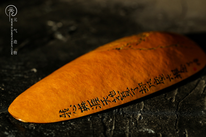 葫芦大漆茶则 刻高旭奇老师人物造像 《寒士半点禅 》外层葫芦皮壳 气色半老 内层大漆犀皮工艺 文雅大方。